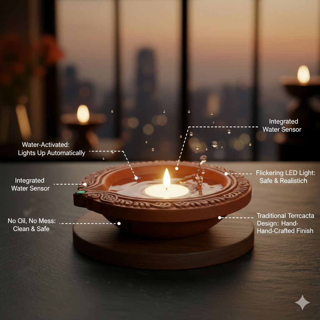 Product Name: LED Light Water Sensor Diyas Plastic with, Ambient Lights, (Pack of 6/12/18/24)